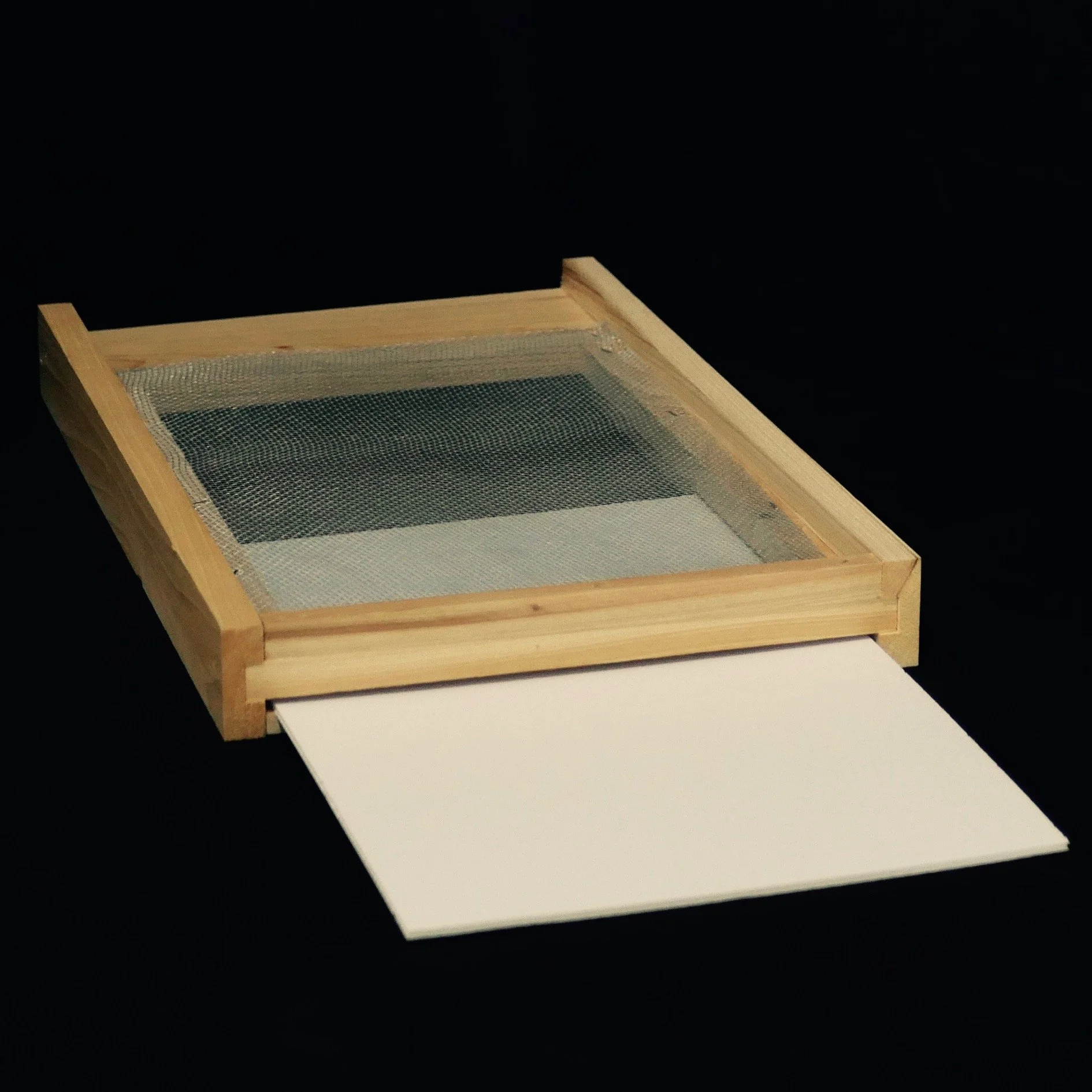 Our Screened bottom board has a #8 screen to provide for additional ventilation. In addition, screened bottom boards can be an effective part of your Integrated Pest Management adding approximately 15% effectiveness in varroa removal as the varroa that are groomed from the bees will fall through the screen and to the ground removing them from the hive. These bottom boards have a slot to allow for the insertion of a board to either close the hive or add a sticky board to conduct mite counts.